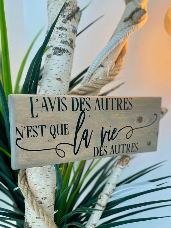 Un message puissant et inspirant pour se recentrer sur soi-même et vivre sa vie sans se laisser influencer par le regard des autres. Une pancarte en bois parfaite pour ajouter une touche de sagesse et de sérénité à votre intérieur.