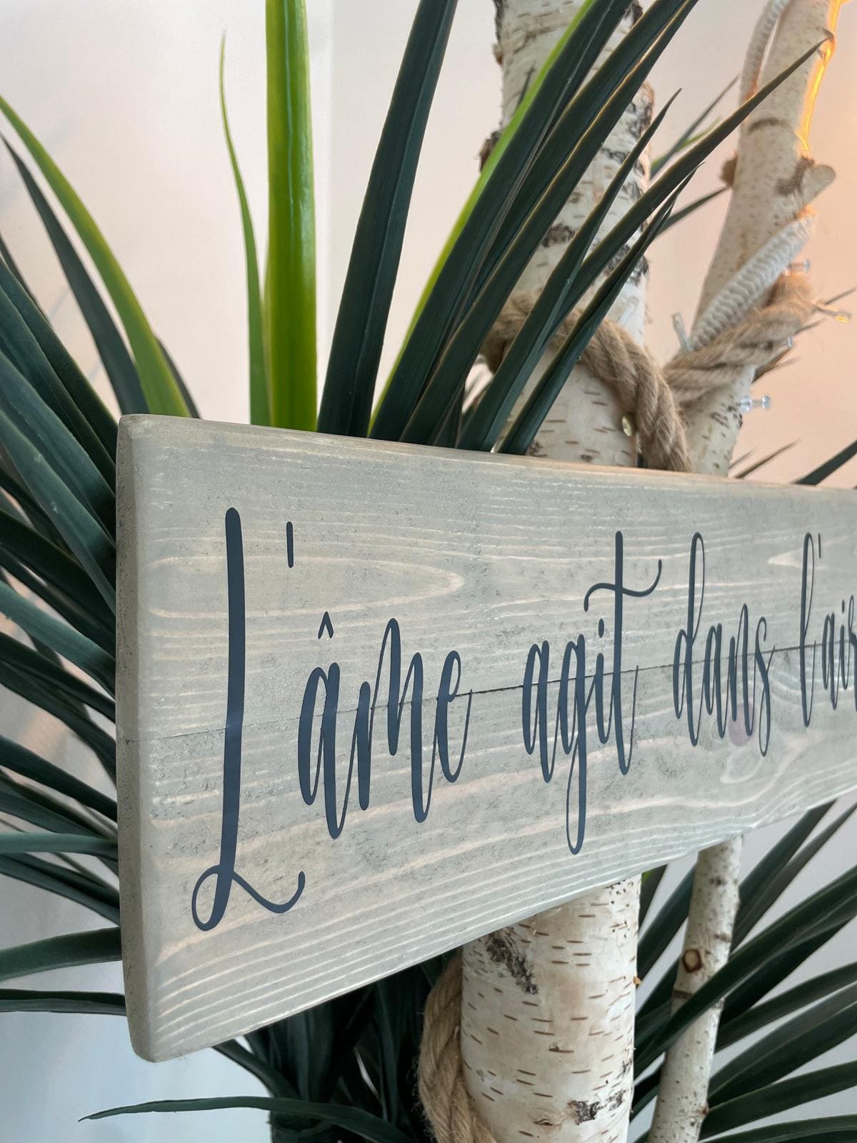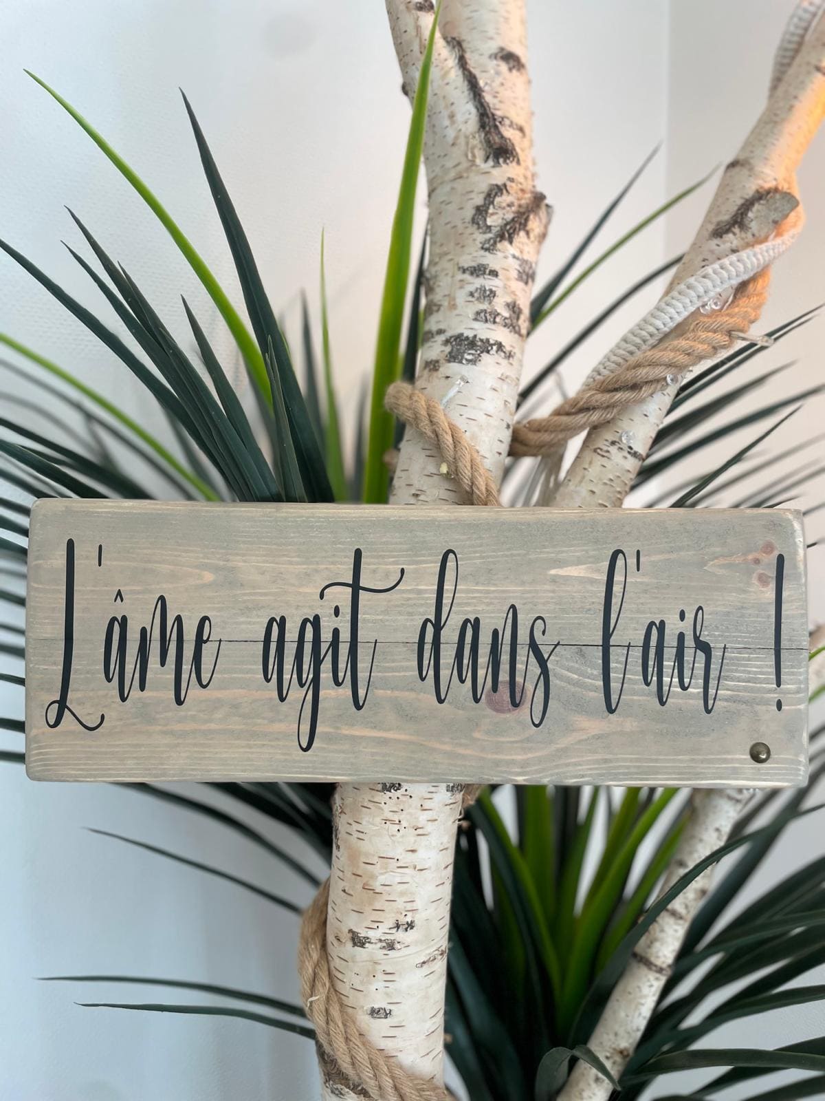 Ajoutez une touche de poésie et d’inspiration à votre intérieur avec cette pancarte en bois « L’âme agit dans l’air ». Ce jeu de mots subtil basé sur le langage des oiseaux invite à la réflexion et à la magie de l’instant présent.