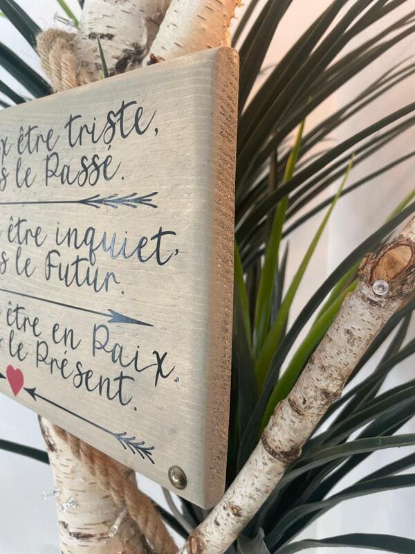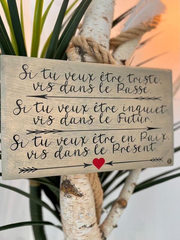 Si tu veux être triste, vis dans le passé. Si tu veux être inquiet, vis dans le futur. Mais si tu veux être en paix, vis dans le présent… Pancarte en bois – citation bien-être